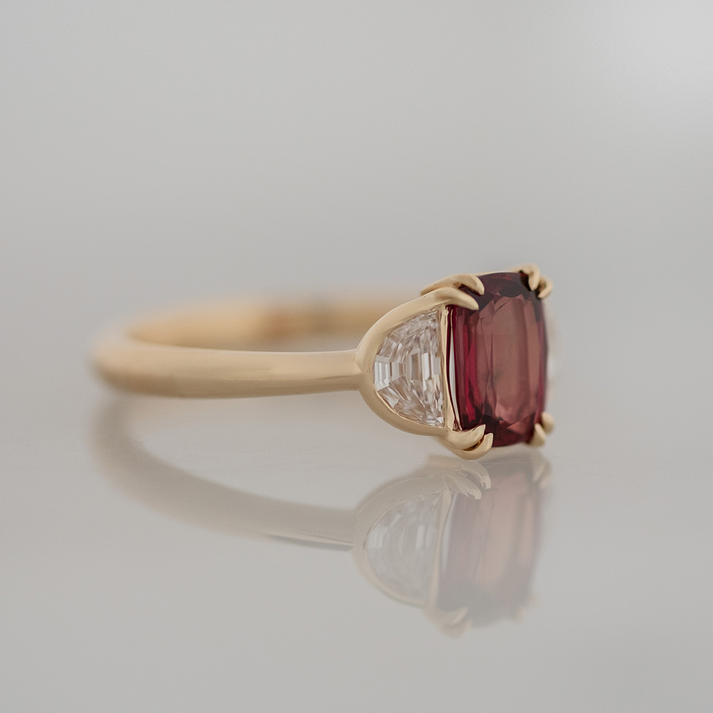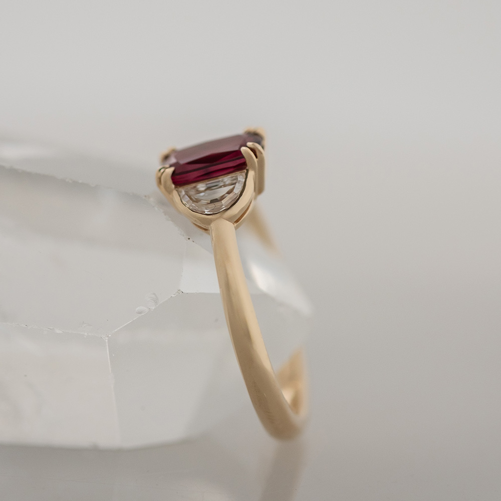Ruby with Half Moon Diamonds in Yellow Gold